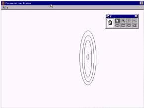 (2)在【圖形工具箱】上單擊【橢圓】工具按鈕,使其高亮。使用【橢圓】繪圖工具在圖示位置繪制四個如圖中大小的橢圓,調整它們之間的位置,使四個橢圓看起來是同心的。