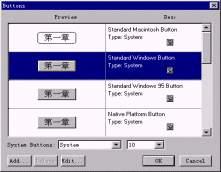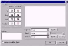 系統提供的按鈕形狀可以用〖edit〗命令按鈕來編輯但不能刪除。我們可以使用〖add〗或〖edit〗命令按鈕彈出的〖button editor〗對話框來定制或修改按鈕的形狀及其特性。