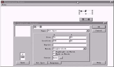 〖熱區〗響應的【properties:response】對話框,是在【presentation window】展示窗口中的熱區響應區域和其特征。
