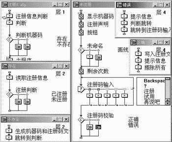 這樣,當用戶每次執行程序時,都會由第一個計算圖標來判斷本軟件是否存在機器碼,然后再通過決策分支路徑來決定程序的走向(機器碼產生后不會改變,除非機器碼信息文件不存在。)。