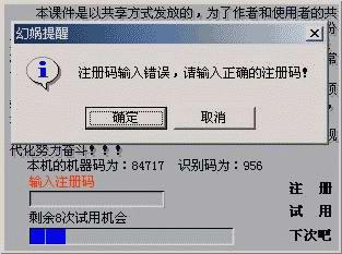 現在,許多軟件都加入了共享大軍,而我們不少教師辛勤制作的教學課件至今仍是免費家族中的一員,大家都可免費使用。因此,我一直在尋求一種保護廣大教師利益的方法,由此便想:能否用手邊的authorware為制作的課件設計一個軟件注冊程序,用于保護我們教師的“知識產權”呢?(是不是覺得太嚴肅了。^-^)。在經過一段時間的思考和實踐并分析參考了其他共享軟件的注冊方法后,終于設計出了一個還算像樣的軟件注冊程序(見圖1),它可是能輸入英文注冊信息的哦。好東東不敢獨享,現將其制作過程敘述如下,希望對諸位有所啟迪和幫助。(注:所有的流程見圖2)