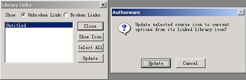 前面我們提過庫與程序之間的這種特殊的鏈接保持關(guān)系同樣體現(xiàn)在對設(shè)計(jì)圖標(biāo)的屬性修改上,也就是說建立"調(diào)用"鏈接關(guān)系后,修改庫文件里設(shè)計(jì)圖標(biāo)的屬性,其實(shí)并不影響先前程序流程線上任何已經(jīng)與該設(shè)計(jì)圖標(biāo)建立鏈接關(guān)系的設(shè)計(jì)圖標(biāo)的屬性,但是我們可以人為地進(jìn)行選擇性的更新,執(zhí)行菜單【xtras】/【library links...】可以選擇存在鏈接關(guān)系的程序流程線上的設(shè)計(jì)圖標(biāo),使其更新保持為和最新版本的庫文件有一致的設(shè)計(jì)圖標(biāo)屬性,如圖2所示。