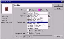(3)size(窗口)的大小表示最終展示窗口的大小,要選擇合適的大小。例如,如果創作是在一個1024×768的計算機上設置為全屏幕顯示,而在最終用戶為800×600的計算機上運行時,則原先的一部分對象就會變得不可見,因而影響了運行的效果。同樣的道理,顯示器的型號也是要充分考慮的。在這里,我們選擇“640×480(vga,mac13’’)”,如圖所示。