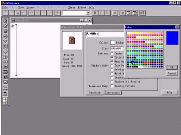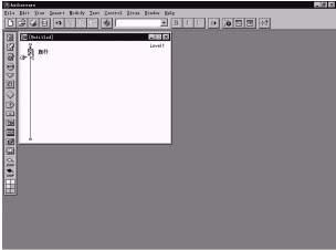 (3)當【顯示】設計按鈕被打開后,【presentation window】窗口便出現在屏幕上,如圖1-6所示,而該【顯示】設計按鈕中所包含的內容(包括文本、圖形等)均顯示在演示畫面上,同時,在設計平臺上將出現圖形工具箱,圖形工具箱的標題欄上顯示的是該【顯示】設計按鈕的標題名,圖形工具箱的最左邊的圖標顯示框中顯示的是該顯示按鈕的圖標。如左圖。利用圖形工具箱中的工具,既可以直接創建文本或圖形,也可以對顯示在演示窗口的文本和