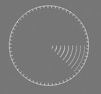 其實你肯定也看出來了。我們只不過做了一些同心圓而已。我們所做的工作,就是要這些圓只顯示圓心角為45°的扇形。在程序中所用到的,無非就是authorware中所提供的幾個系統函數罷了。