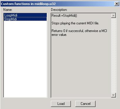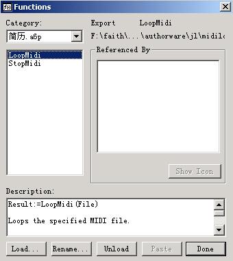 window-->function-->簡(jiǎn)歷.a6p-->load-->找到要調(diào)用的外部函數(shù)midiloop.u32圖示: