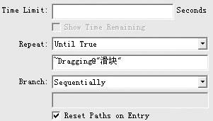 1、運行程序,可以看到滑塊移動時動畫相應的幀也會跟著播放,但動畫自動播放時,滑塊的位置卻沒有移動,下面就來解決這個問題。在交互圖標旁邊再放置一個群組圖標,取名為“動態移動滑塊”,雙擊群組圖標上面的“=”打開屬性框,“type”選擇“time limit”,在“time limit”中輸入0.1,作用是每隔0.1秒就自動調整滑塊位置,使其與動畫播放位置相同,選擇“interruption”下的“pause,resume on return”,再選擇“restart for each try”;單擊“response”,設置如圖3所示,其中“active if”中的“~dragging@"滑塊"&&~moviepaused”表示只有當動畫播放且沒有拖動滑塊時該交互才可以使用。