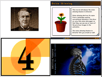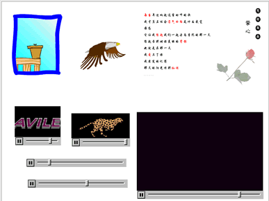 4個視頻圖標分別展示flc、fli、director、mpeg的格式,可以全部同時展示,對于可以導入的dir文件的交互是完全支持的。直接用視頻展示消耗大量系統資源,建議盡量少使用。