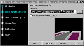 使用“movie controller”知識對象,由于它集成了一些程序片段,占用資源較高,運行效率比其他的方法要差一些,這可以在調用知識對象時的速度很慢可以發現,這應該是目前所有知識對象的通病,相信在以后的發展中,這應該是值得注意的一個地方。