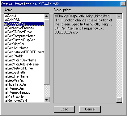此時出現(xiàn)altools.u32中所有的函數(shù)列表,本例只需選擇“alchangeres”,然后點(diǎn)按“l(fā)oad”按鈕確定。