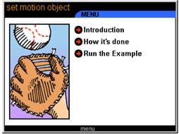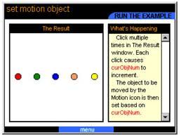 畫面左側窗口中有5個顏色分別為紅、綠、藍、紫和黃的小圓形圖案,用鼠標在窗口任意處單擊,其中一個圓形圖案將向鼠標單擊處移動;如果鼠標在窗口幾個地方連續單擊,則5個小球將同時移動起來,并且各朝各的方向移動,好像分子做布瑯運動一樣。