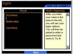 畫面光標閃爍處提示用戶輸入姓名(對一個英文名字,分為first name、middle initial和last name三段),按enter鍵確認,程序將判斷是新用戶還是老用戶。