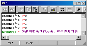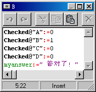 自定義變量“answer”中的內(nèi)容是標(biāo)準(zhǔn)答案,其初使值為“正確答案是b”。