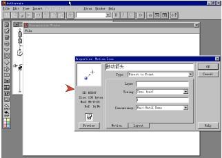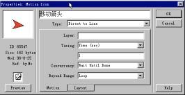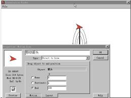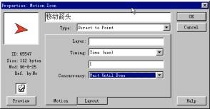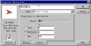 ⑤【type】物體運動方式:設置為〖direct to line〗,意思是從物體所在位置,運動到一條直線上的某一點。請讀者注意,當【type】的方式改變時,【motion icon】對話框變為圖2-16所示的樣子。這種改變,在authorware的各種設置過程中都是非常重要的。希望讀者在以后的設計過程中細心地觀察類似的情況。