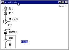 ①雙擊打開名字為〖箭頭〗的【顯示】設計按鈕,然后關閉該【顯示】設計按鈕,目的是使該【顯示】設計按鈕中的內容記錄在authorware的歷史記錄中。