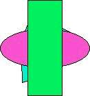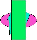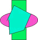 這樣在運動的過程中,方塊的運動速度最快,多邊形的運動速度最慢,橢圓將趕上多邊形,由于橢圓所處的層次級別低于多邊形所處的層次級別,則多邊形顯示在橢圓的上方,覆蓋了橢圓的部分圖形,當方塊趕上橢圓和多邊形后,由于方塊比它們兩個的層次級別都低,所以方塊處于最底層,被橢圓和多邊形所覆蓋。程序運行中的重疊效果如圖4-4所示。