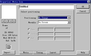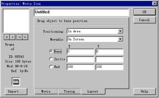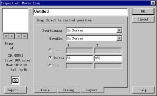 該對話框主要用來設置在展示窗口上顯示的數字化電影的顯示位置和移動特性: