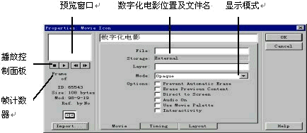 雙擊【數字化電影】設計按鈕,彈出數字化電影的屬性對話框,(如圖4-33所示):