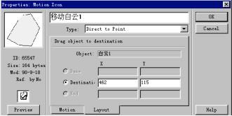 (1) 至固定點的運動(兩點間的運動)。這種運動方式是將顯示對象從展示窗口中的當前位置運動到指定的終點位置。