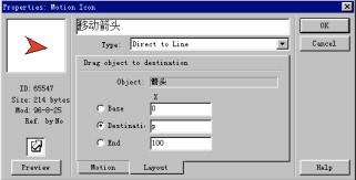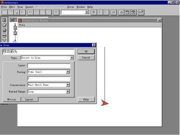 單擊圖4-12所示的【base】選項,然后在展示窗口中將箭頭拖動到起始位置釋放,設定直線的起始位置,authorware將該位置默認為值置為0。