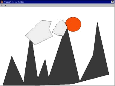 對象實際的動畫可使球圖形自轉、圖象滾動以及文本的變形等。我們可以通過引入數字電影來實現實際的動畫;然而,在實際的動畫中,動畫在展示窗口中實際的位置不可能改變。