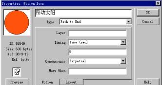 ⑤【times/cycle】:該播放模式對外部存儲的數字化電影文件無效。選擇該播放模式,authorware限制每一次播放中重復的次數。當選擇該播放模式后,authorware將調整播放的速度來完成每一次播放中指定的次數。 例如,讀者可以模擬月球繞地球旋轉的實例。在該實例中,月球自轉是一個數字化電影動畫,讓這個數字化電影動畫沿一定路徑繞地球旋轉,我們可以調整times/cycle速率來使月球在繞地球旋轉一周的情況下,數字化電影播放多少次。