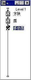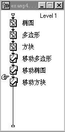 在這里,顯示對象層次的級別只限于在運動過程中,也就是說,顯示對象在運動的過程中遵循層次級別的重疊方式。當顯示對象運動到目的地靜止后,顯示對象之間的重疊方式則不再遵循設定的層次級別方式,靜止后的重疊方式由程序主流程線上【移位】設計按鈕的先后位置決定(如圖4-6所示)。