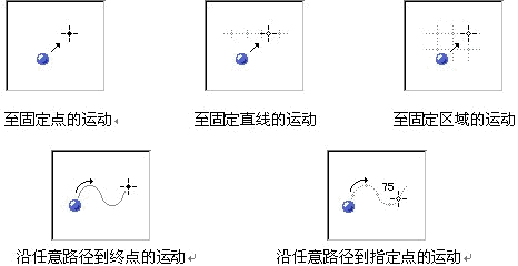 第四和第五種移動方式非常相似,不同之處是第四種方式是沿指定路徑直接移動到終點,第五種方式是沿指定路徑移動到路徑上的任意點。