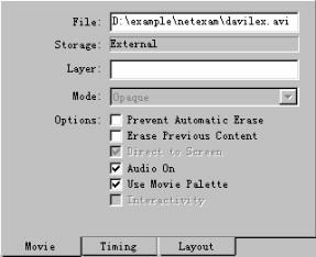⑤【option】內部選項(該區域的選項如圖4-27所示): 請讀者注意,在該區域的選項并非對所有的文件都適用,當我們引入不同格式的數字化電影文件時,該區域的選項列表中只有和引入的文件格式相關的選項可用,其它的選項處在不可選的狀態,如圖4-35所示。當我們引入了一個windows標準格式avi后,該區域只有四個選項可用。其它兩個選項變成不可使用。