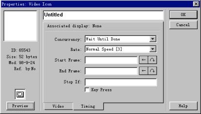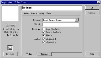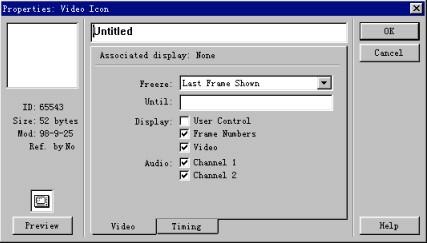 在前面【視頻】設計按鈕屬性對話框的設置中我們學習了在【start frame 】和【end frame】正文輸入框中輸入起始幀和終止幀的幀數來指定播放視頻信息的范圍。這種設置我們稱為基于幀數的片斷選擇。