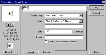 下面來介紹【聲音】設計按鈕的【sound】對話框相關內容的含義: