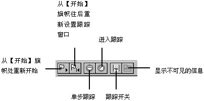 (1) 從【開始】旗幟處重新開始(restart from flag):使用該功能按鈕,跟蹤窗口將從程序流程線上的【開始】旗幟所在位置重新開始跟蹤。