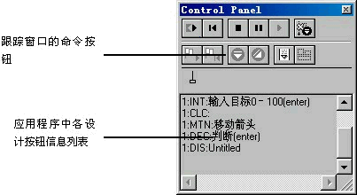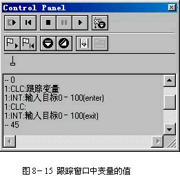 (5) 跟蹤開關(guān)(trace on/off):該功能按鈕控制跟蹤信息的顯示與否,即使是在跟蹤的時候,該功能按鈕仍然可用。在調(diào)試的過程中,我們可能只對某一部分的信息有興趣,則可以將該按鈕關(guān)上,關(guān)閉跟蹤信息。事實上,筆者建議讀者將該功能按鈕一直打開,又不會影響程序的執(zhí)行效果,信息當然是越多越好。還是讓跟蹤窗口打開的好。