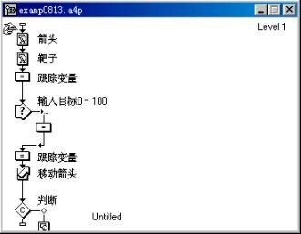 為了說明如何使用跟蹤窗口在authorware的應(yīng)用程序運行時跟蹤變量的值,我們以實例2中的程序為原型來說明該問題。