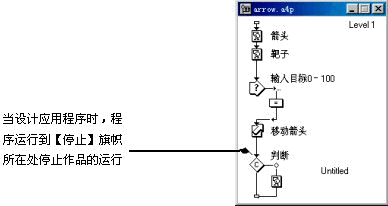 【開始】旗幟和【停止】旗幟是authorware為程序設(shè)計時所提供的工具。無論讀者是否從流程線上去掉它們,當程序最終發(fā)行給用戶的時候,所有的旗幟將被忽略。