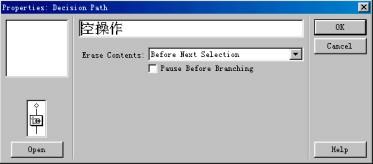 (22) 在該對話框中對分支結構內容的擦除設置。我們在這里使用authorware的默認設置【before next selection】,即在執行下一分支前擦除該分支結構中的顯示信息。