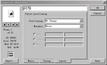 在【positioning】:下拉選項列表中選擇【no change】選項,表示該【數字化電影】在展示窗口中的位置最終用戶是不可改變的。