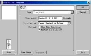 在【time limit】正文輸入框中輸入時間限制random(3, 9, 0.25),時間的限制為一個隨機的介于3秒和9秒之間的一個值。