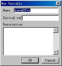 (2) 關閉該對話框,authorware會彈出確認保存輸入內容的對話框,單擊該對話框中的【yes】命令按鈕,authorware自動檢測該對話框中輸入的內容,彈出圖10-11所示的新建變量對話框。單擊該對話框中的【ok】命令按鈕,關閉該對話框,完成對新建變量saveqipos的設置。