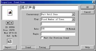圖10-44【聲音】設計按鈕的【timing】對話框