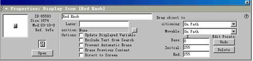 同時打開一個標尺及其對應滑塊圖形(比如【red track】和【red knob】)。選中滑塊后,執行【modify/icon/property】菜單命令打開其屬性設置對話框,如圖1-5所示。