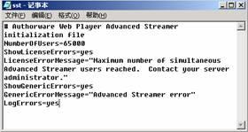 #是注釋行,第一行說明打開的是authorware web player advanced streamer。number of users是這個版本的authorware advanced streamer的序列號被確認(rèn)之后,控制能夠同時運行多媒體課件的用戶數(shù),最大的數(shù)值是65000人。