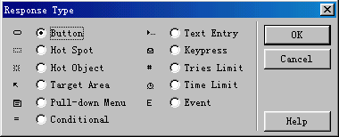 多媒體具有交互性,可實現作品的人機對話,這是傳統媒體所不具備的特點,也是的多媒體作品大受歡迎的原因。authorware 共有十一種交互方式,可方便地實現各種交互,下面分別介紹,參見圖6。