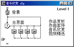 我們選中“button”單選框,單擊“ok”。接下來分別把這幾個映射圖標命名為“作品賞析、作曲家傳、音樂欣賞、視頻精選”,這里需要提醒一下,在做程序時應經常保存文件,以免自己的創作成果因電腦故障而消失得無影無蹤,相信每一個創作都會痛述authorware沒有自動保存功能!在第一次保存文件時可將順便將程序命名為“音樂欣賞”,如圖7所示。
