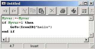 對(duì)于某些特殊的系統(tǒng)變量,使用時(shí)后面要有一個(gè)"@"字符再加上一個(gè)圖標(biāo)標(biāo)題,例如"movable@"icontitle" :=false"的格式,這種語(yǔ)句稱為引用變量,此賦值語(yǔ)句表示在程序執(zhí)行過(guò)程不允許用戶對(duì)"icontitle"圖標(biāo)進(jìn)行任何的移動(dòng)。
