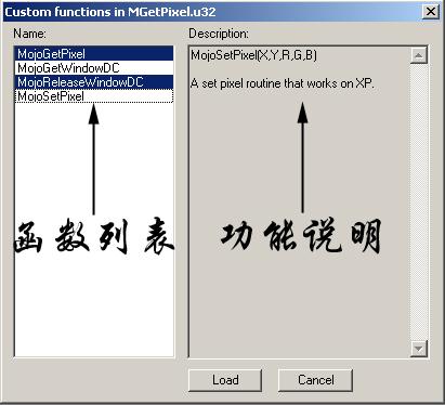 和dll一樣,使用u32里的函數也必須事先導入,方法和dll大同小異:執行菜單命令【window】|【functions】或快捷鍵ctrl+shift+f調出函數列表對話框,在【category】域中選擇當前的文件分類,此時對話框左下的按鈕【load…】變為可用;單擊【load…】按鈕瀏覽選擇相應的u32文件,此時會彈出一個該u32全部函數列表的對話框,選擇一個或多個函數導入即可,如圖6所示。導入后的u32函數就可以和系統函數一樣隨心所欲地使用了。當然程序打包的時候切記附帶發行相關的u32函數庫。