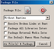 在修改無誤而且滿意的情況下,可以把authorware文件生成可執行文件,這樣可以脫離authorware環境進行獨立運行。生成可執行文件的過程叫做打包。選擇file-package命令,出現文件打包對話框。 在打包文件類型的下拉列表中選擇for windows 95/98/nt選項,然后單擊save file(s)& package按鈕,保存生成的可執行文件。 | ![]() |