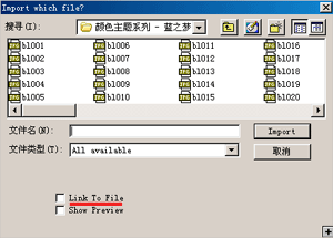 (2)單擊工具欄中的引人素材按鈕或選擇file-import命令,出現(xiàn)引入圖片文件對話框。