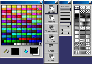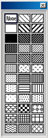 (1)雙擊顯示圖標,出現(xiàn)演示窗口和繪圖工具箱。 (2)選擇顯示圖標中需要設(shè)置填充模式的對象。 (3)選擇window-inspectors-fills命令彈出填充模式工具箱,或雙擊繪圖工具箱中的畫矩形工具 (4)單擊圖形填充模式工具箱中不同的填充圖紋,則被選取的圖形的填充底紋就會跟著變化。 | ![]() |