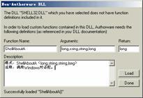 單擊圖4-3中的【load】按鈕裝載函數(shù),如果裝載成功,則在對話框中顯示“successfully loaded "shellabouta()"”。